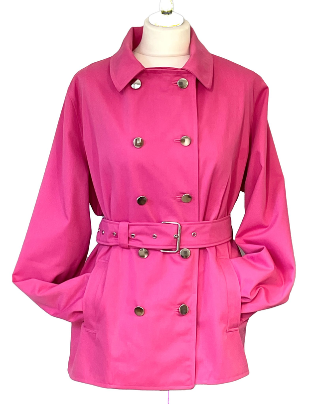 veste fabriquée en France, tissu de gabardine de coton rose vif.