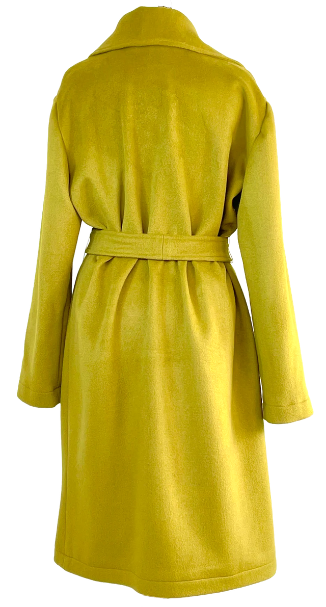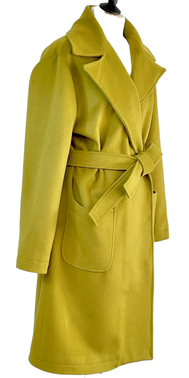 Le manteau est fabriqué dans un tissu de lainage de couleur vert pistache.