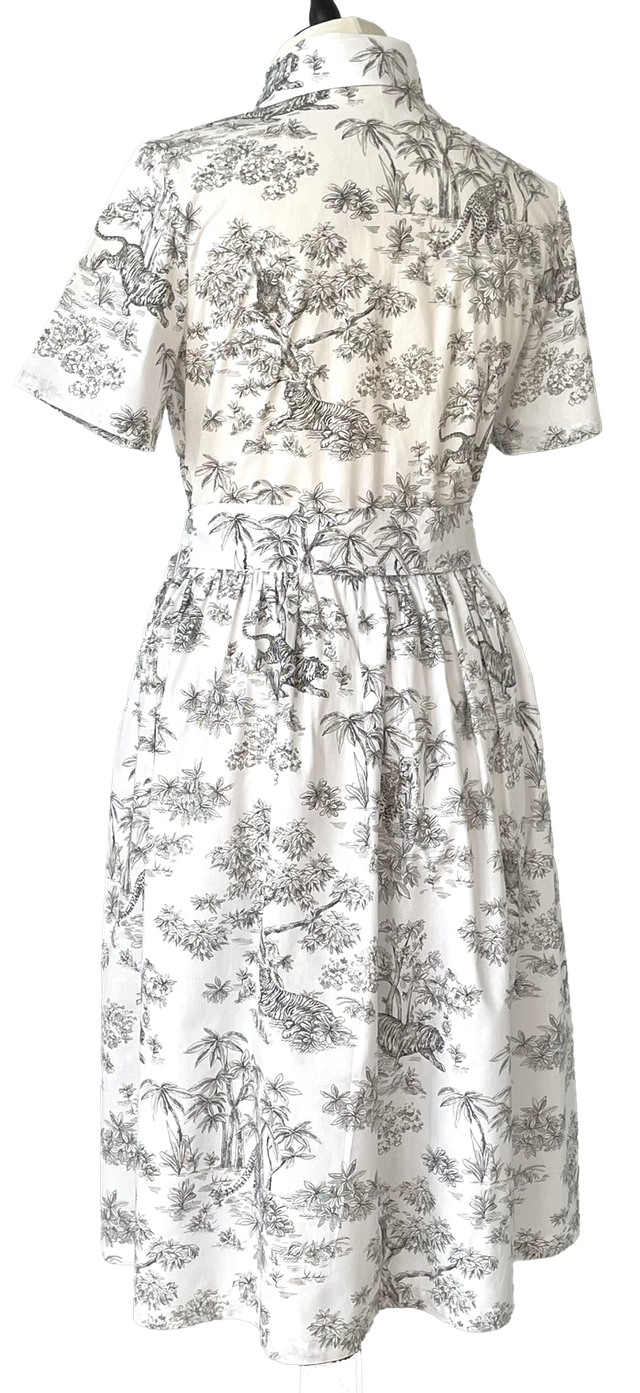 La jupe est doublée avec un tissu en voile de coton blanc.