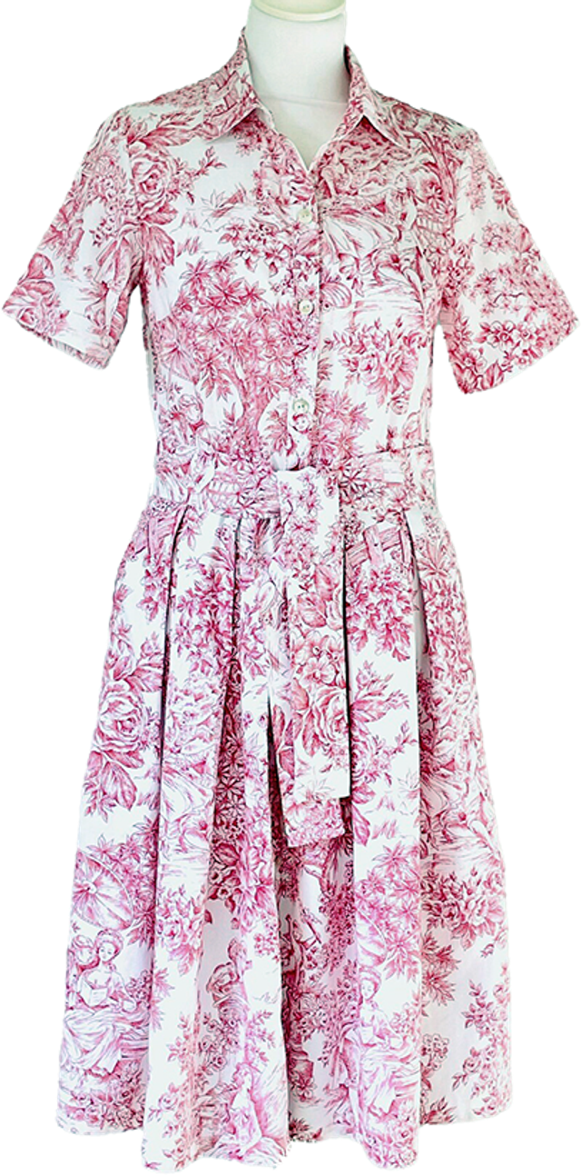La robe a des poches dans les coutures de côté et une ceinture fabriquée dans le même tiss.