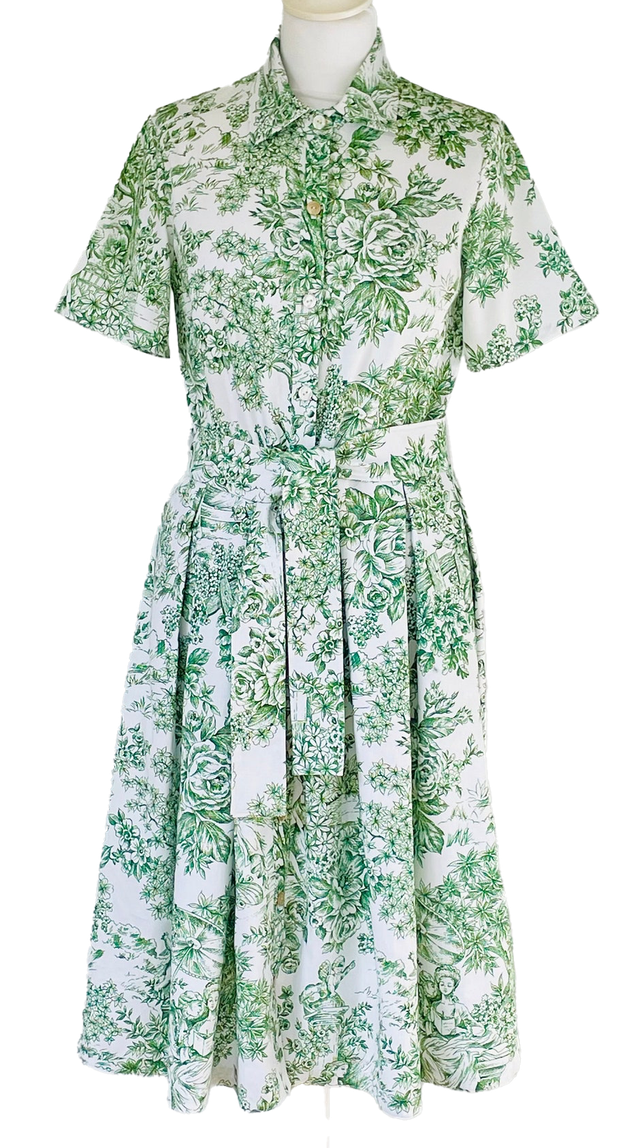 Fabriquée en France dans un tissu piqué de coton avec un fond blanc imprimés motifs toile de Jouy bleu marine ou rouge.