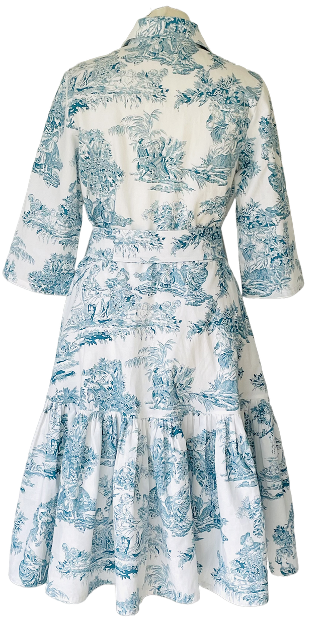 Robe chemise toile de jouy turquoise - taille 42 (fr)